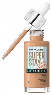 Maybelline New York Superstay 24H Skint Tint Fluide 30 ml - Barwa: 36 to rozświetlający podkład wzbogacony witaminą C, o 24-godzinnej trwałości i regulowanym kryciu.