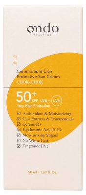 Ondo Beauty 36.5 Ceramides & Cica Protective Sun Cream SPF 50 + 50 ml to krem przeciwsłoneczny chroniący przed promieniowaniem UVA i UVB.